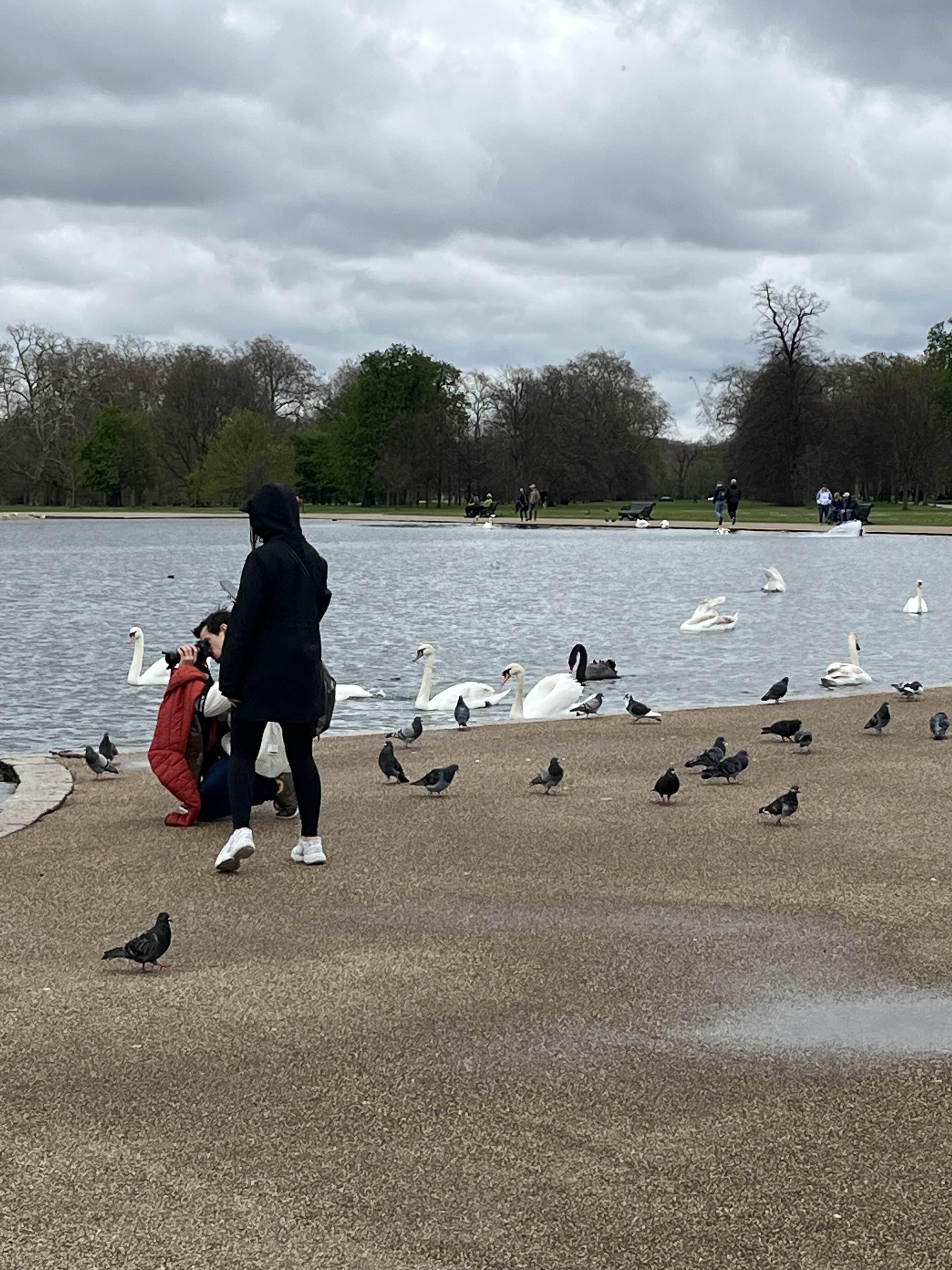 저 안내문이 무색하게 딱 저 자세로 새들한테 먹이주는 사람 한 10명쯤 있음.