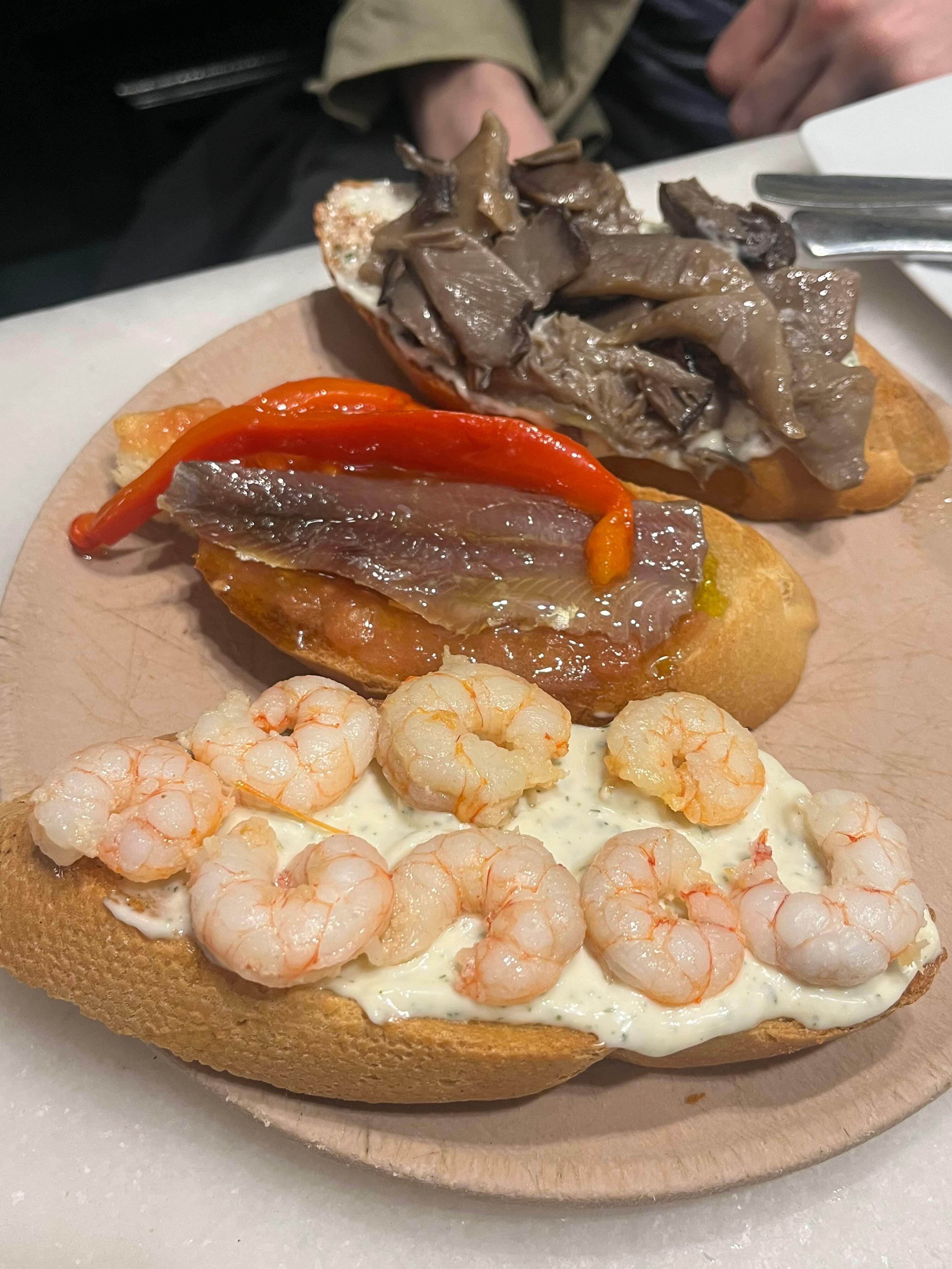 일행 중에 스페인어할 줄 아는 사람이 있어서 로컬바에서 타파스를 실컷 시켜 먹었다. 올리브랑 절여진 정어리? 같은거 꽂혀 있는 꼬치가 진짜 맛있었다. 로컬 레스토랑, 바에서는 영어가 잘 안 통해서 바디랭귀지로 소통하거나 스페인어 능력자와 함께 하는 것을 추천합니다.